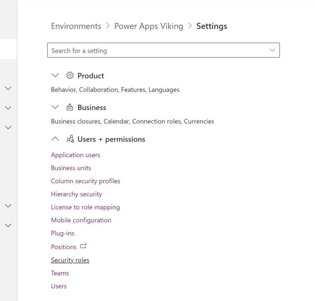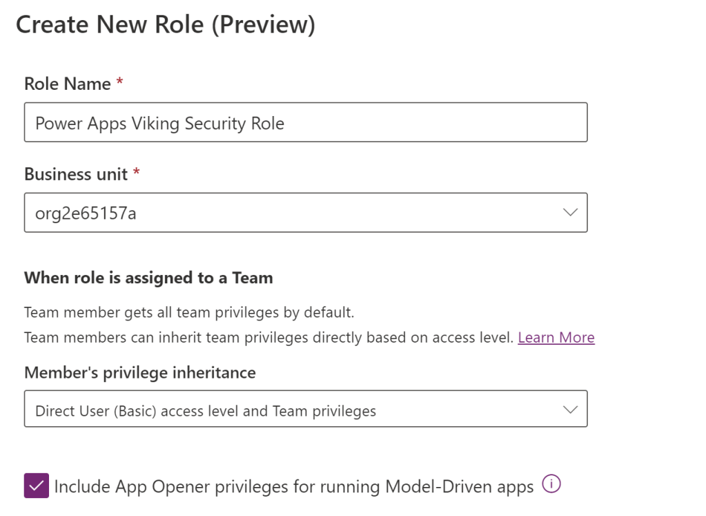 Preview feature alert Another thing that needs to be said is that the current interface is shown as a preview. This does not mean that you won’t be able to work with security using the modern interface in the future, but some buttons might change position or name. Everything we will work with in this post can be done in the classic interface as well. Unless the Power Apps team is planning a major transformation of security roles then everything covered in this post will be valid for a long time. And seeing as this is used as the basis for security for many enterprise companies, I don’t foresee any significant changes to the security setup any time soon.